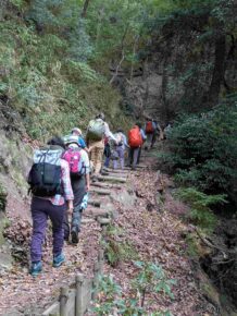 展望は良くなかったが、大きな東屋で雨に濡れることなく昼食。昼食後は、摩耶ケーブル利用の5名と別れ、11名で「青谷道コース」を下り、約2時間で王子公園駅に戻った。