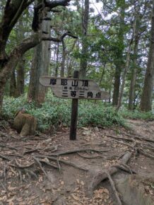 足元に気を付けながらの歩行と、雨具を着たり脱いだりで大変だったが、全員元気に下山できた。気温と樹々はすっかり秋を思わせる登山であった。(TT)