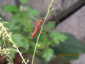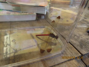 ツチイナゴ、セスジスズメガの幼虫、オンブバッタ、オオカマキリ、リスアカネヒメアカネ(オス・メス)オニヤンマ、キタキチョウ、アミガサハゴロモ
