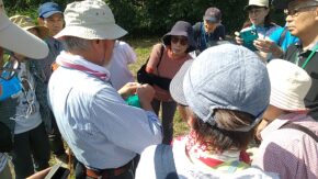 『クビアカツヤカミキリは河内長野方面から和泉に来た!』と言われているという説明にはなぜか爆笑でした。 それから記録表を持ち広場に出かけると、講師の説明もほどほどに網で昆虫を追っかける熱心な人も居り、皆さん童心に返って夢中になり昆虫を追いかけて楽しんでいました。 そして昆虫・植物の説明を聞きながら公園内を回り、事務所に戻って何種類の昆虫を観たか同定していくとなんと想像以上に30種類も観察できていました。